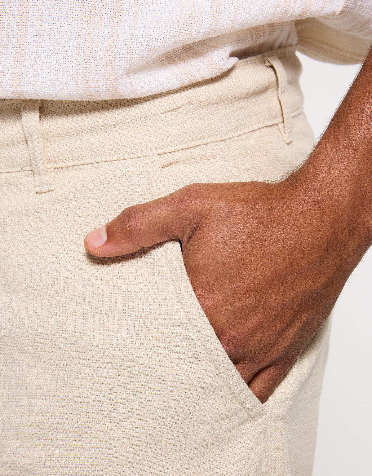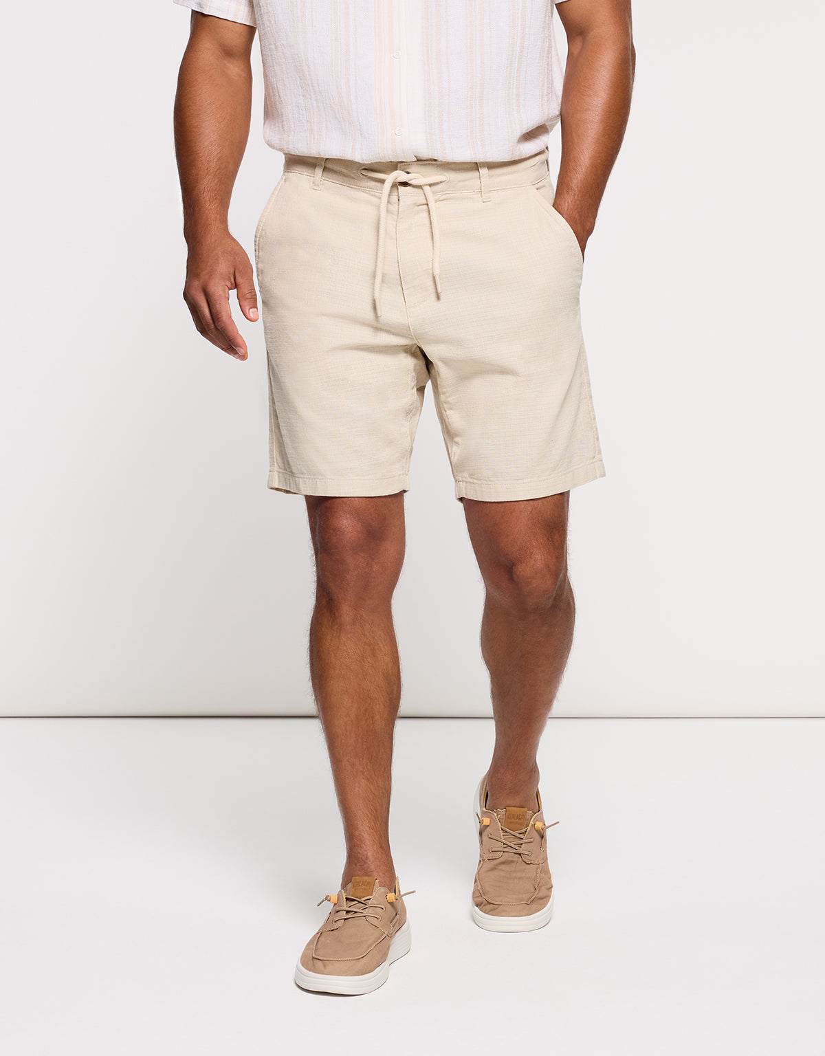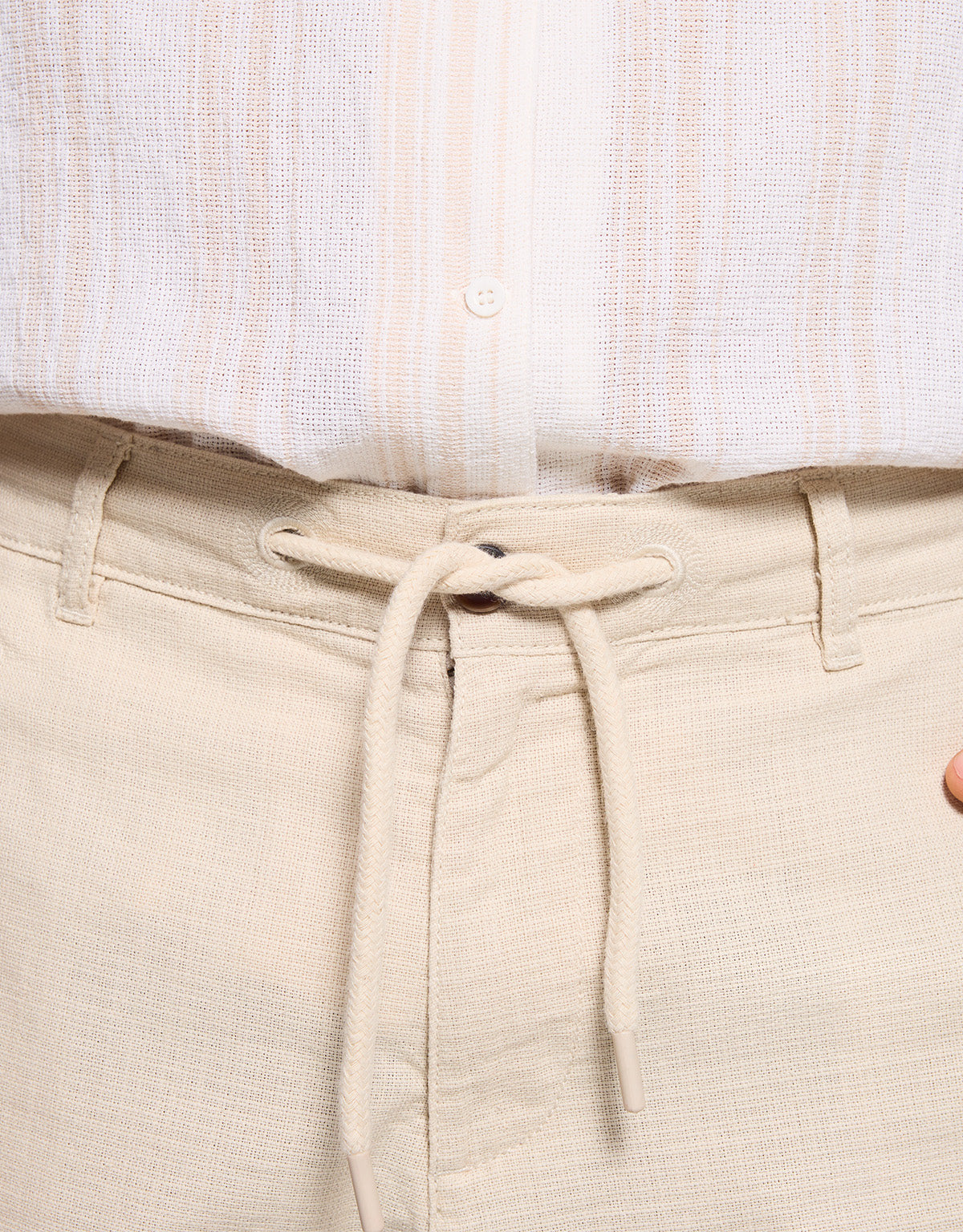 Bermudashorts Nafio Dos in Beige, aus 100 % Baumwolle für mehr Komfort und Atmungsaktivität. Ein elegantes Basic mit verstellbarem Kordelzug und Gesäßtaschen mit Knopf.
