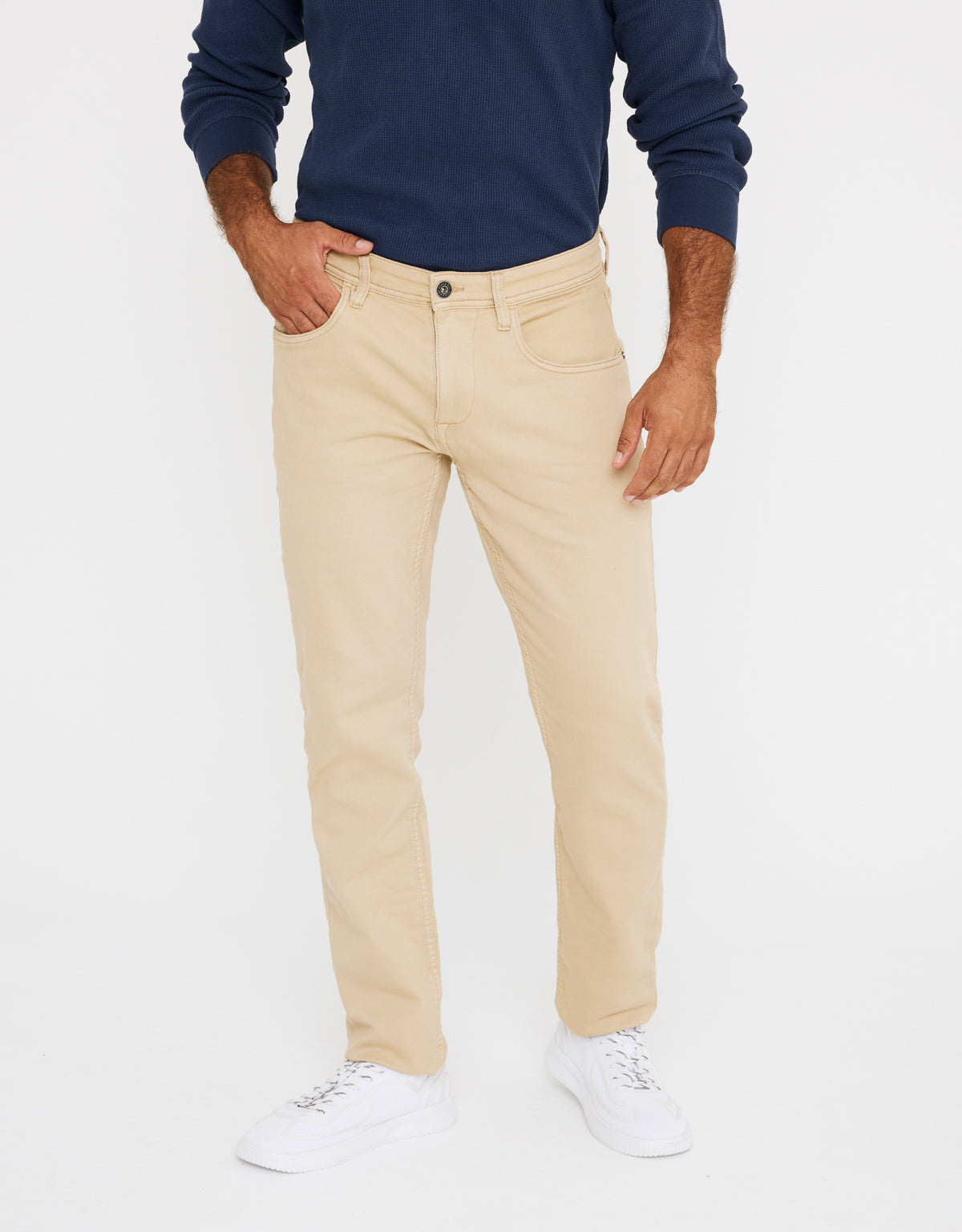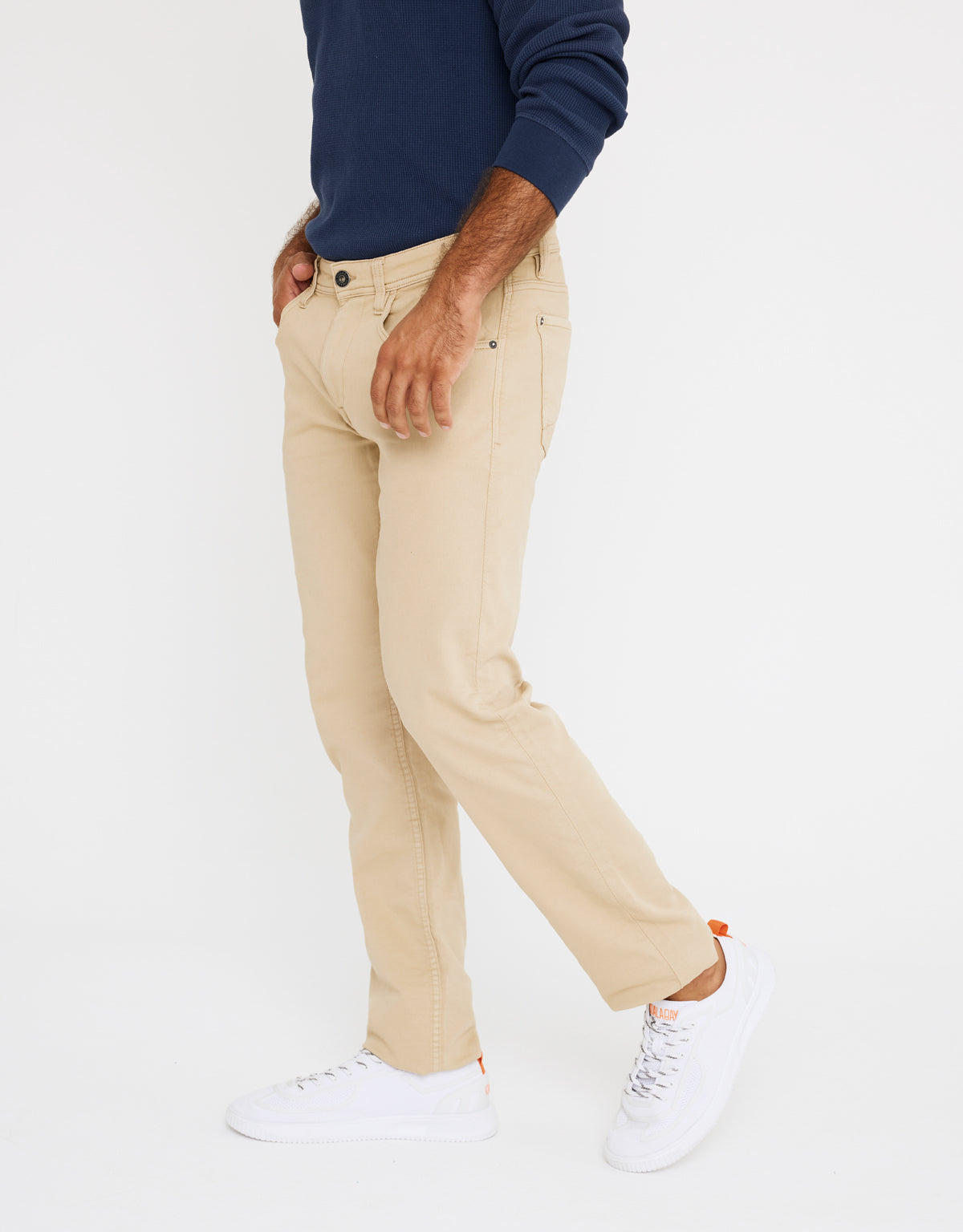 Chino-Hose aus Baumwoll-Elastan-Mischgewebe, das für Elastizität sorgt. Vordertaschen und Paspeltaschen auf der Rückseite. Reißverschluss und Knopfverschluss vorne.