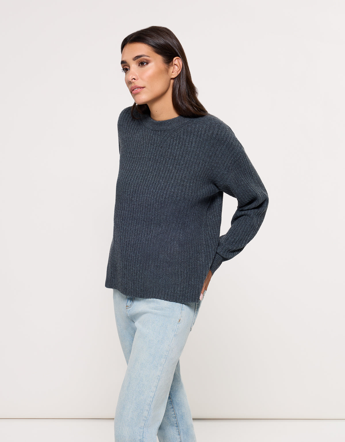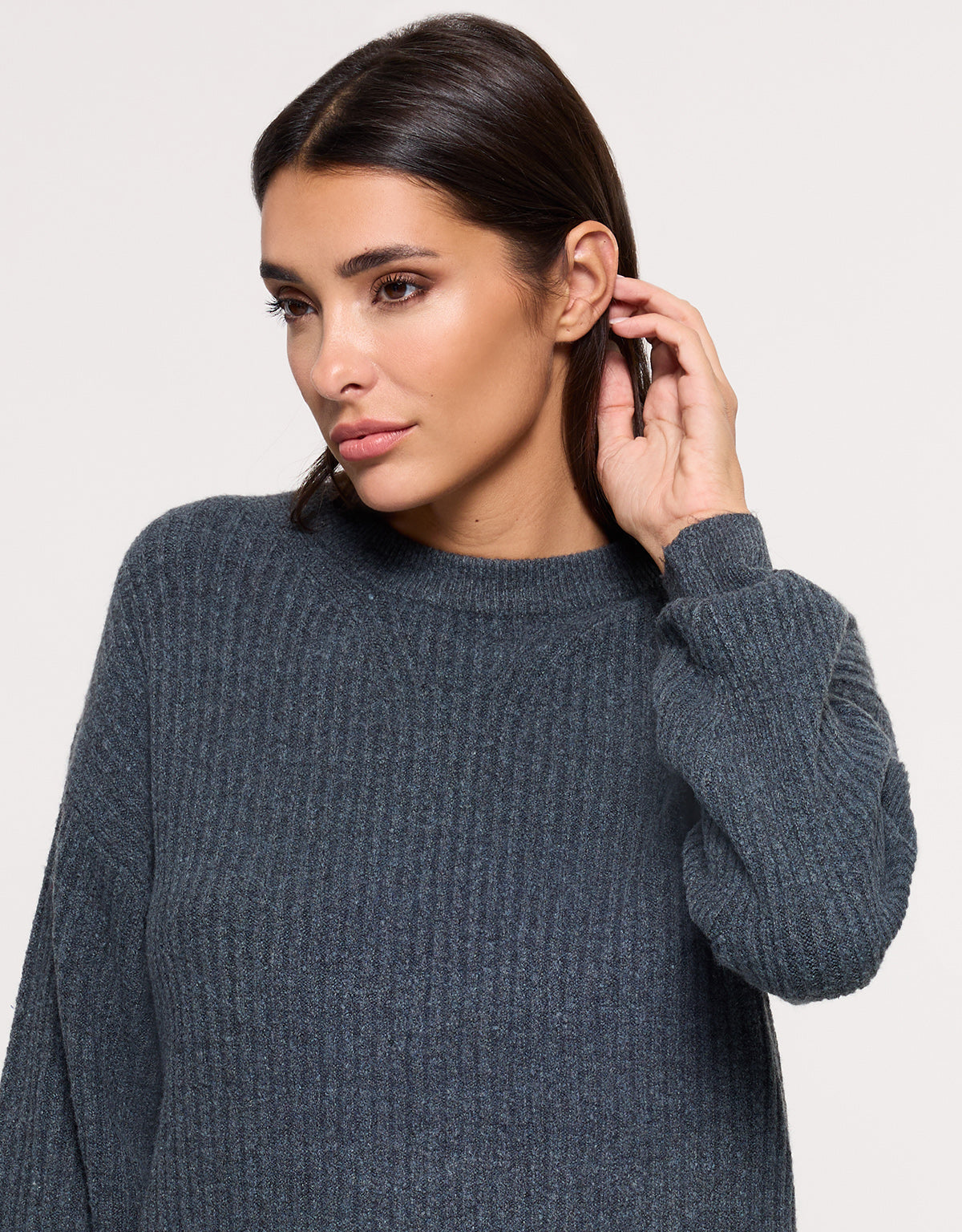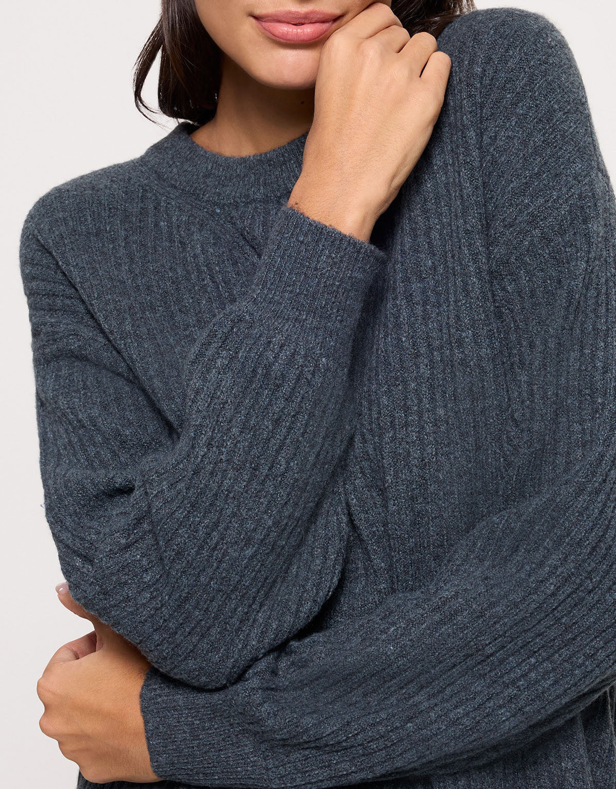 Der blaue Pullover Capibara kombiniert ein Rippstrickdesign mit Rundhalsausschnitt und langen Ärmeln und ist ideal für einen vielseitigen und zeitlosen Look. Er ist aus einem weichen und bequemen Stoff gefertigt und passt sich leicht Ihrem Alltag an, wobei er Stil und Wärme vermittelt.
