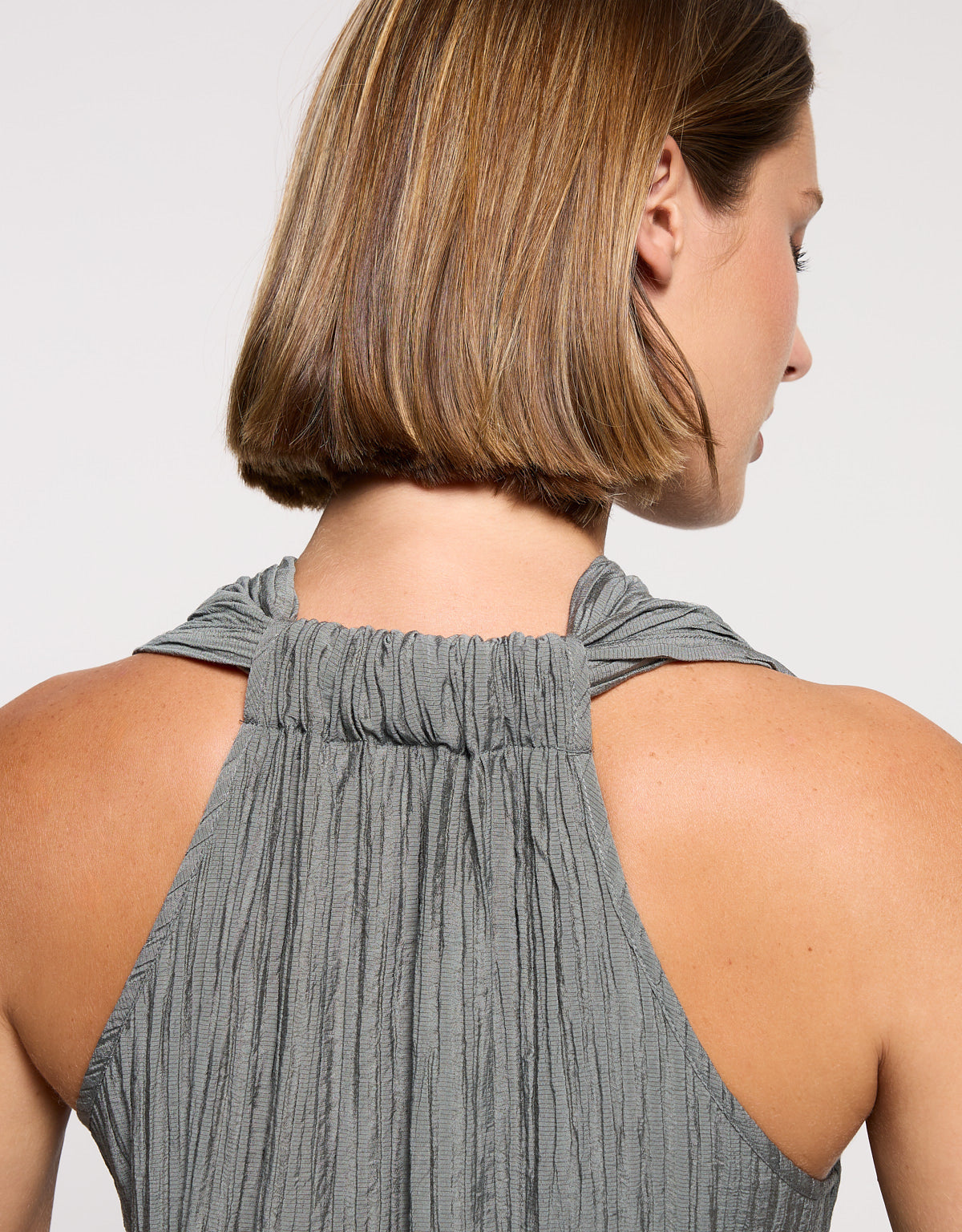 Das grüne Midikleid Samiraves aus einer weichen und atmungsaktiven Rayonmischung besticht durch sein ärmelloses Design und seinen eleganten V-Ausschnitt. Sein fließender Fall sorgt für Bewegung und Komfort bei jedem Schritt. Werfen Sie auch einen Blick auf das Set aus T-Shirt Samira und Hose Samirto aus derselben Kollektion, um Ihre Garderobe stilvoll zu ergänzen.