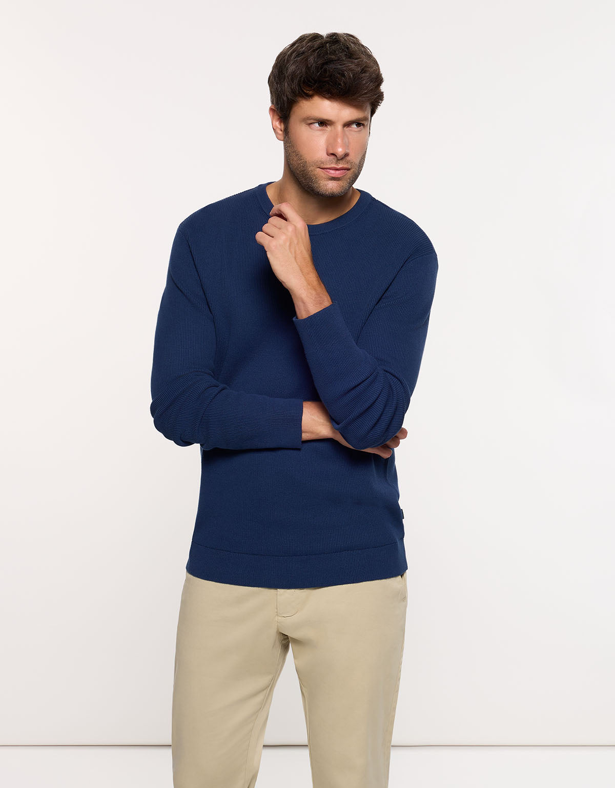 Der langärmelige Pullover Drobo in Marineblau ist ein unverzichtbares Basic in jedem Herrengarderobe. Er ist aus einer Baumwollmischung gefertigt und bietet Komfort und einen weichen Griff. Sein Rundhalsausschnitt macht ihn zu einem vielseitigen Kleidungsstück, das sich perfekt für den Alltag eignet.