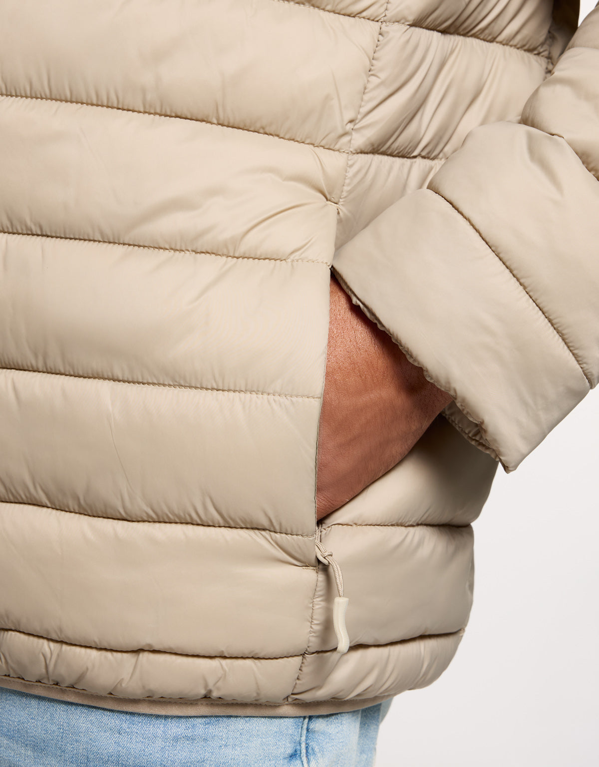 Ninbay jacket in arena, made of lightweight, durable nylon that provides comfort and warmth. Its light-colored quilted design is elegant and versatile, ideal for mid-season wear. Perfect for layering with darker garments underneath to create stylish contrasts.