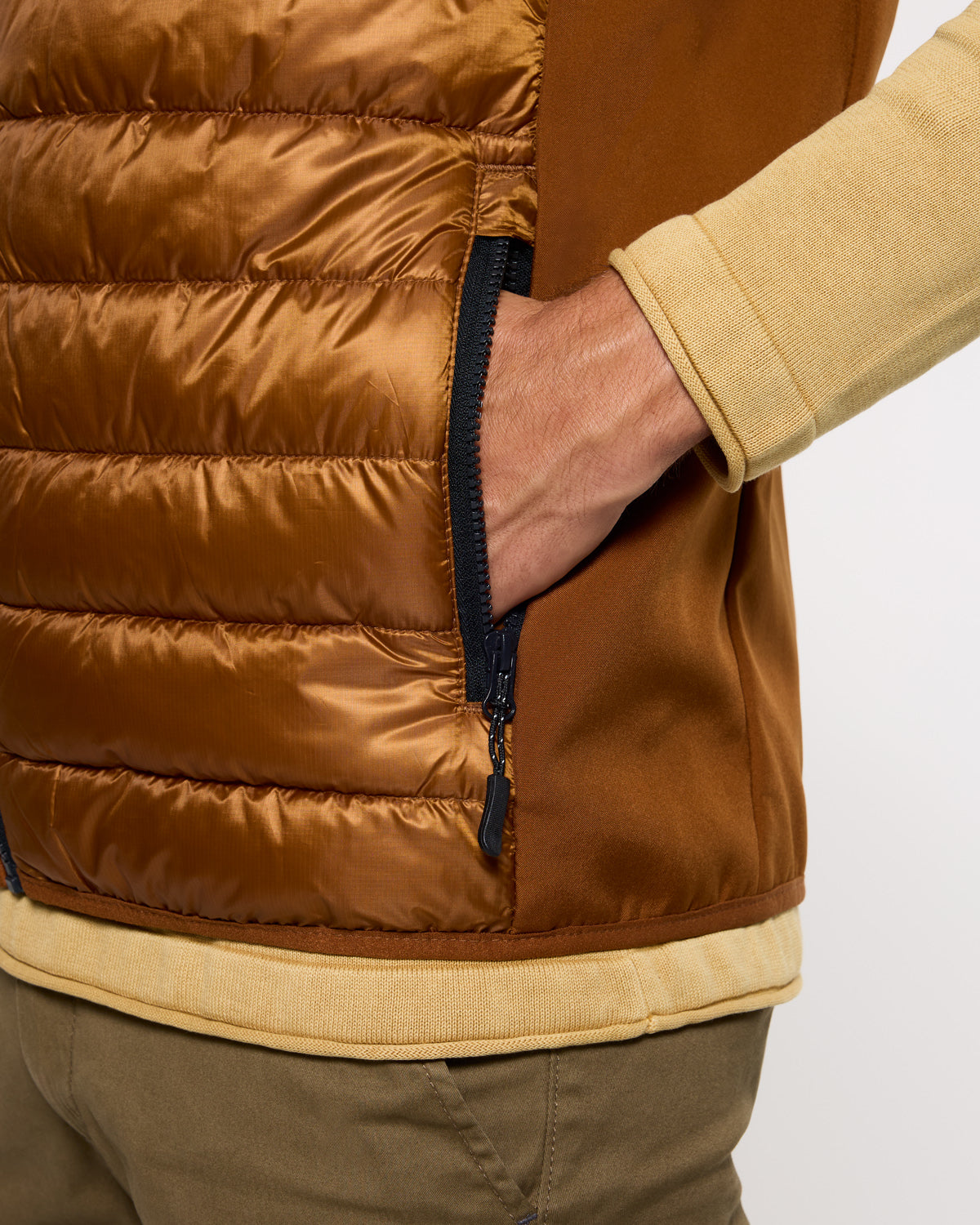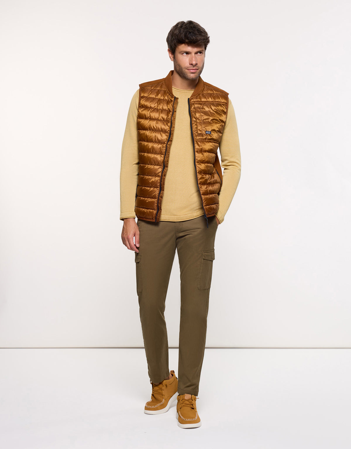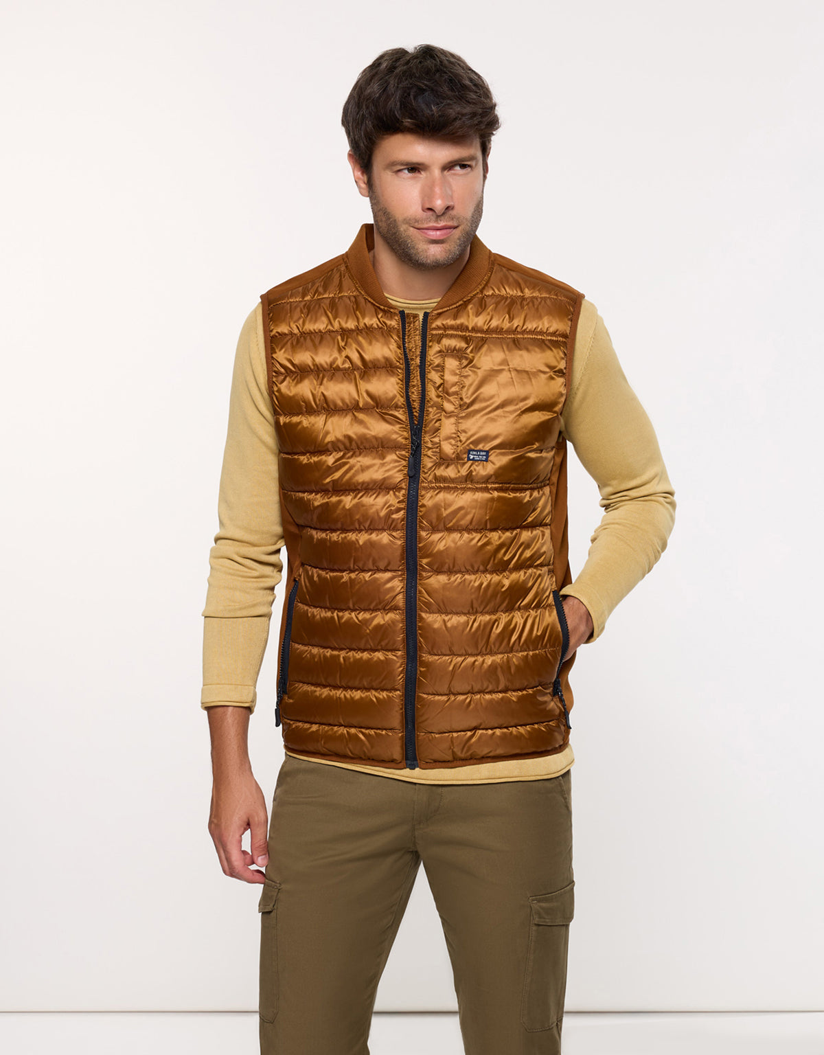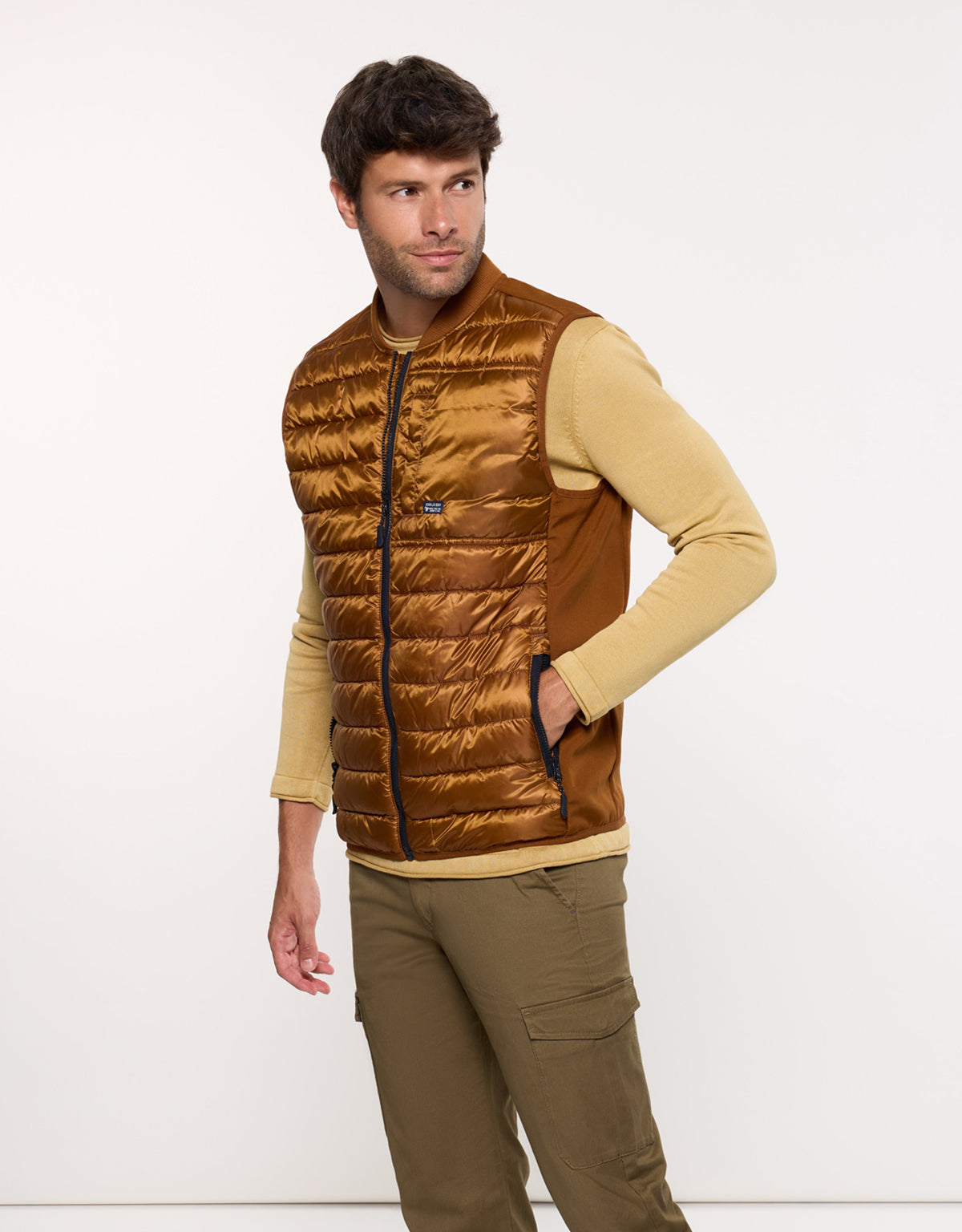 Brown Dinao quilted gilet. Lightweight and practical, it's ideal for pairing with T-shirts or sweaters on transitional days. A versatile basic for a casual and functional look.