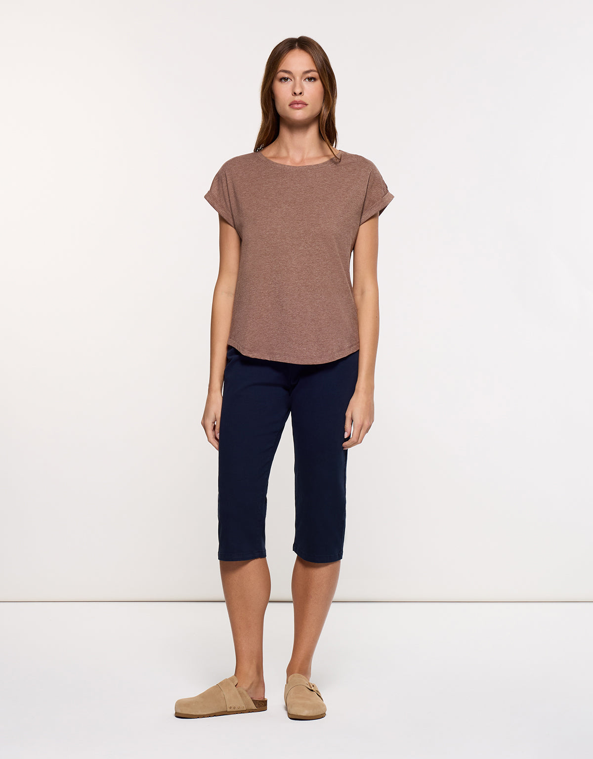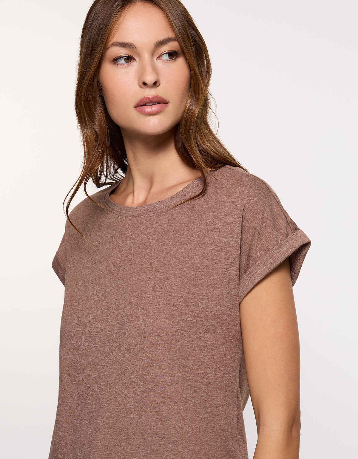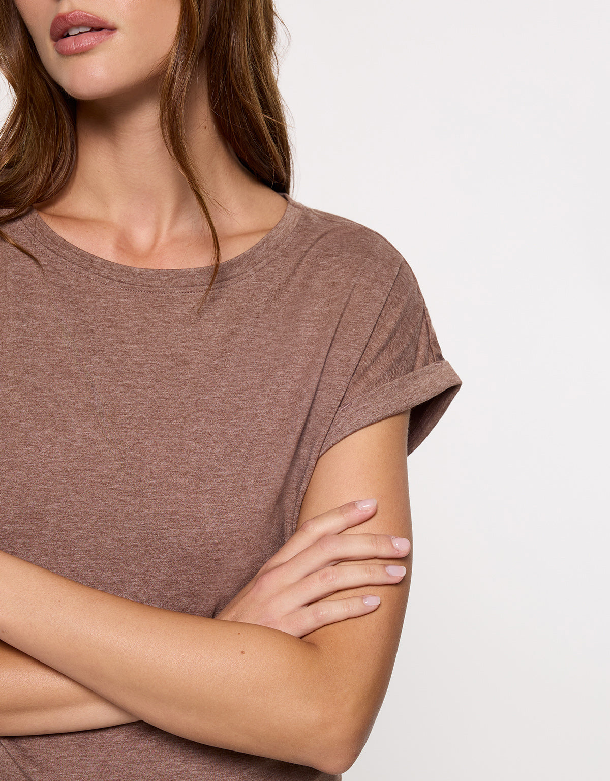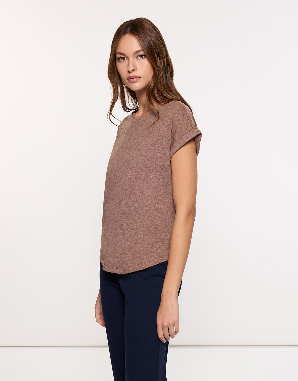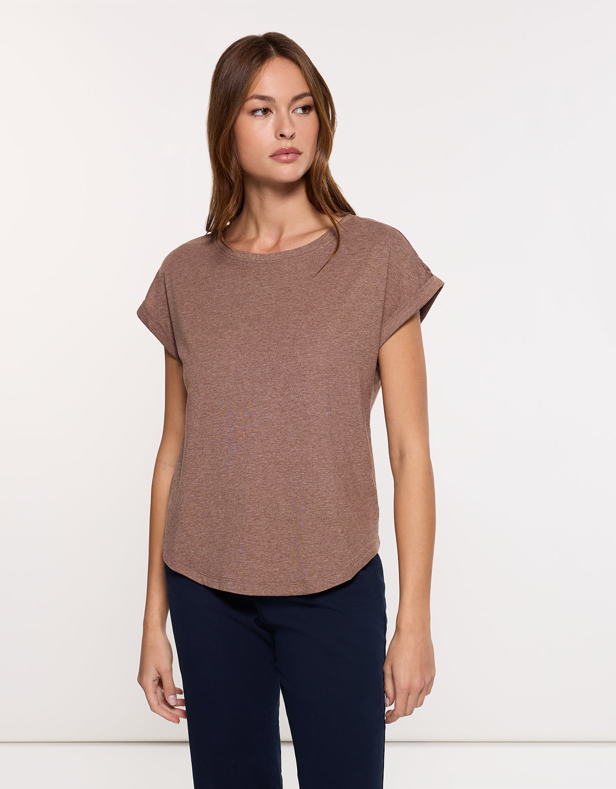 Luma short-sleeved T-shirt in brown. Its basic design with a round neck and slightly rolled-up sleeves makes it easy to style. Ideal for creating comfortable and cool everyday looks.