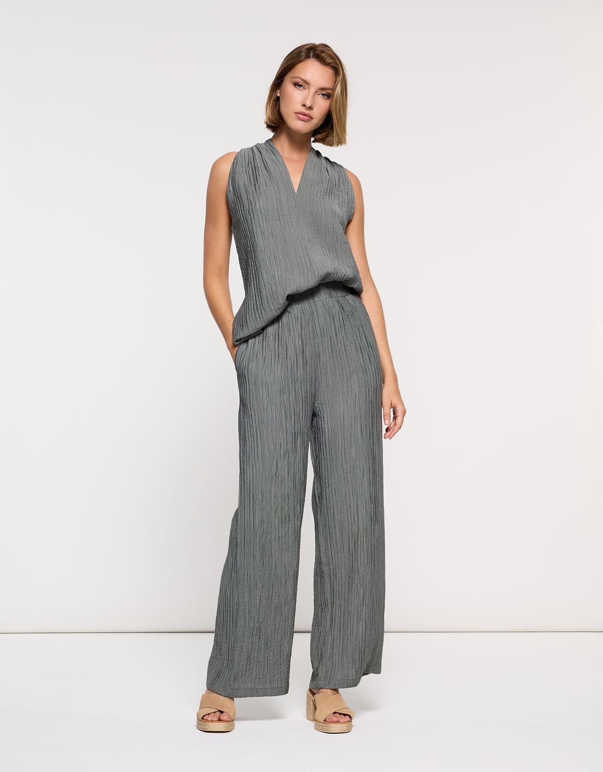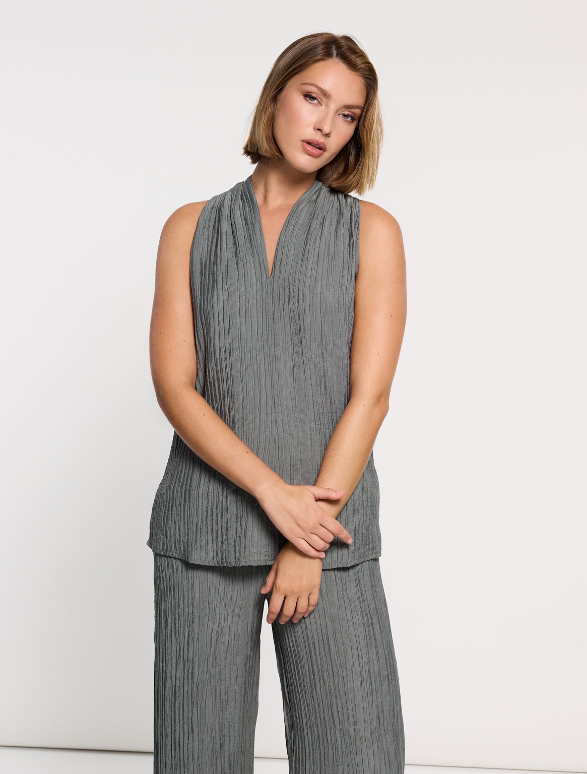 The Samira sleeveless blouse, crafted from a rayon blend, is soft, lightweight, and highly breathable. Its fluid design and natural drape make it perfect for stylish comfort on any occasion. Pair it with the matching Samirto pants for a super-coordinated look.
