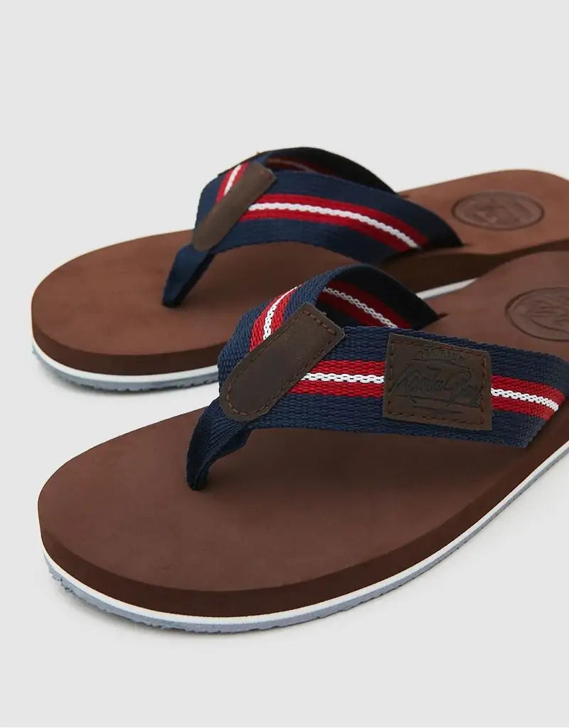 Men's flip-flops, monochromatic sole and wide striped fabric straps. Walk with maximum comfort and safety during your vacation. These flip flops are ideal for those who crave ultimate relaxation and timeless style that never goes out of style. Get ready to enjoy maximum comfort and style on your adventures in the sun with these beach flip flops!