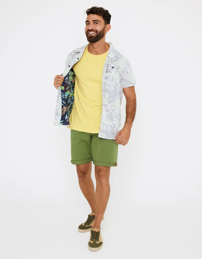 Chemise avec col à revers et manches courtes. Contraste de couleurs à l'intérieur. Fermeture boutonnée sur le devant et poche poitrine. Imprimé exclusif Koala Bay.
