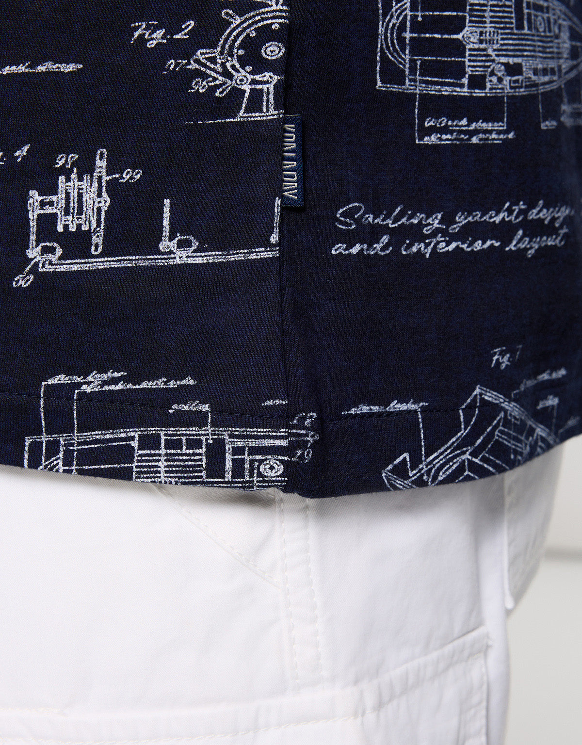 Le t-Shirt Slaapy bleu marine, 100 % coton, offre douceur et confort au quotidien. Son imprimé d'inspiration nautique apporte une touche estivale et originale à vos tenues décontractées.