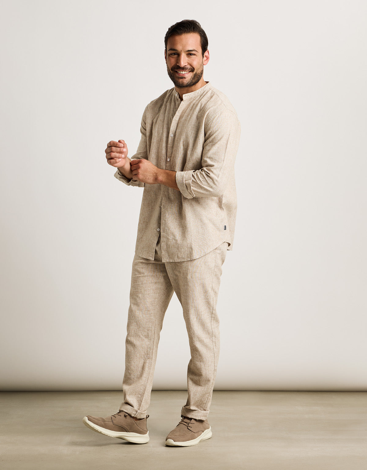 En nuestros pantalones largos de verano de hombre, usamos tejidos ligeros como algodón, lino y mezclas transpirables que ofrecen frescura y confort incluso en los días más calurosos.