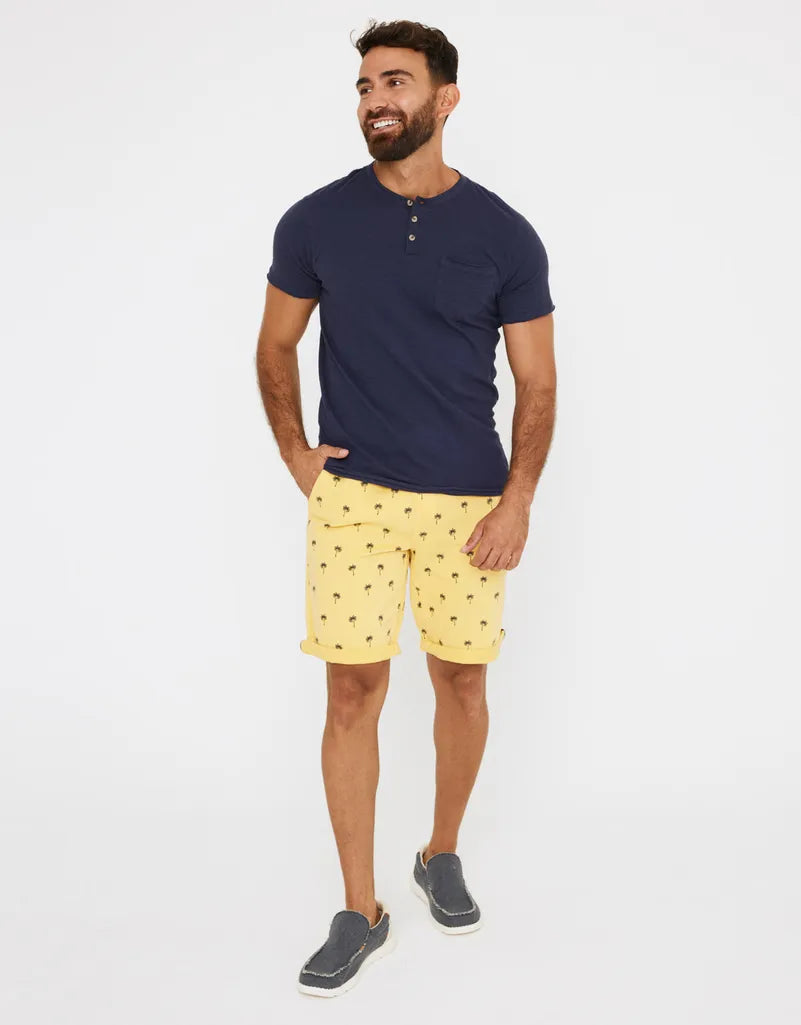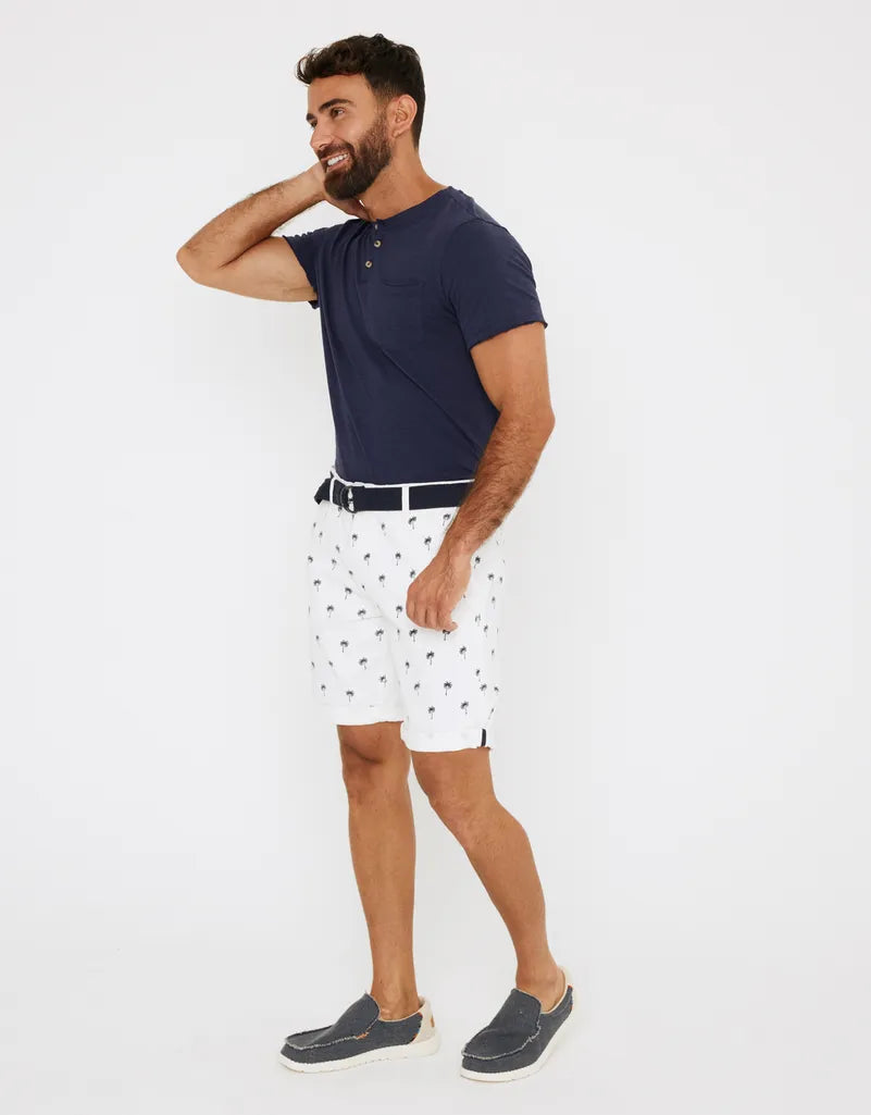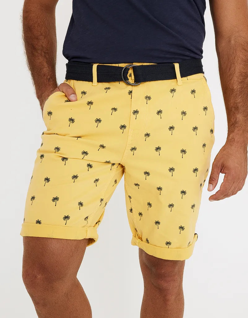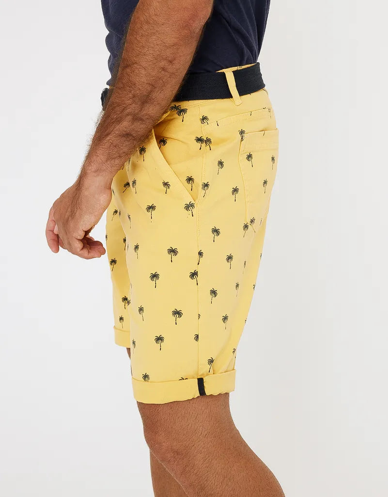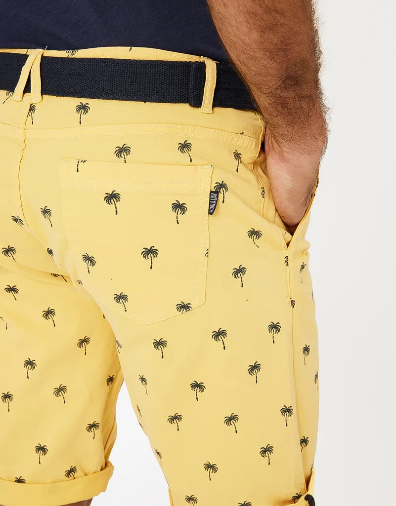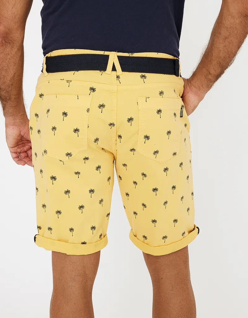Bermuda estampada regular fit con cinturón. Cinco bolsillos. Cierre frontal con cremallera y botón.